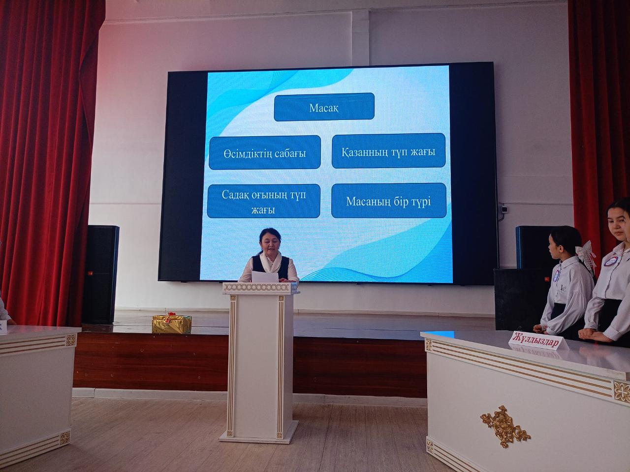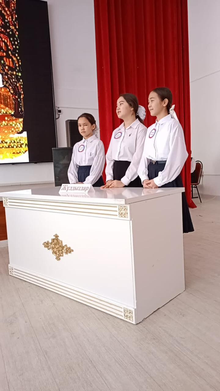 "Еркін елдің ертеңі-кемел білім мен ана тілінде" тақырыбындағы қазақ тілі мен әдебиеті пән бірлестігінің апталығы аясында 6- сыныптар арасында "Алтын қақпа" лингвистикалық ойыны өткізілді. Оқушылар халқымыздың көне заманнан келе жатқан көнерген сөздерін, сөздік қоры бай халқымыздың тұрақты тіркестері мен әр аумақтың өзіне тән диалект сөздерінің мағынасын ашып, білімдерін таразыға салды. Жеңіске жеткен топ "Алтын сандықтың сұрағына жауап беріп, сандықтан шыққан сыйлықтарды өзара үлестіріп алды. Тіл - мемлекеттің тұғырлы тірегі, халықтың рухани байлығы. Әрбір азамат мәңгілік еліміздің сарқылмас байлығы - ана тілін көзінің қарашығындай сақтап, құрметін арттырса, еліміздің болашағы жарқын болары анық.
