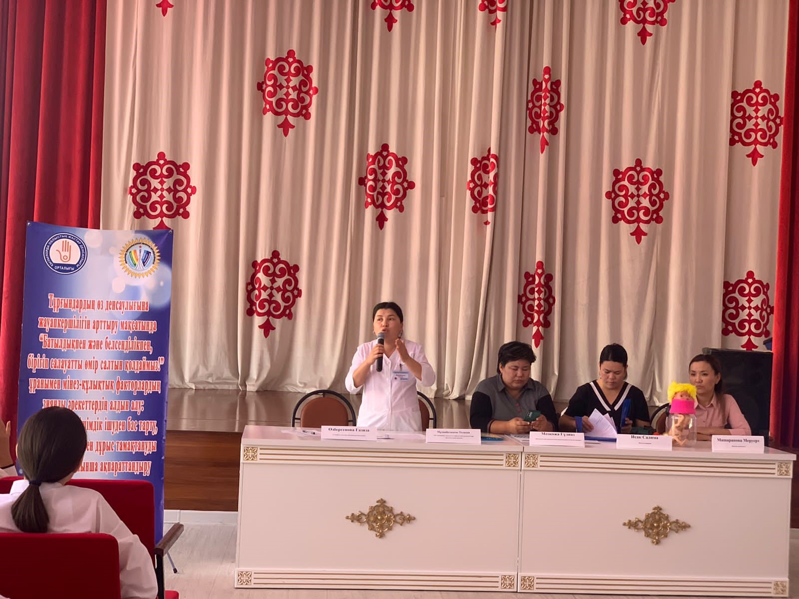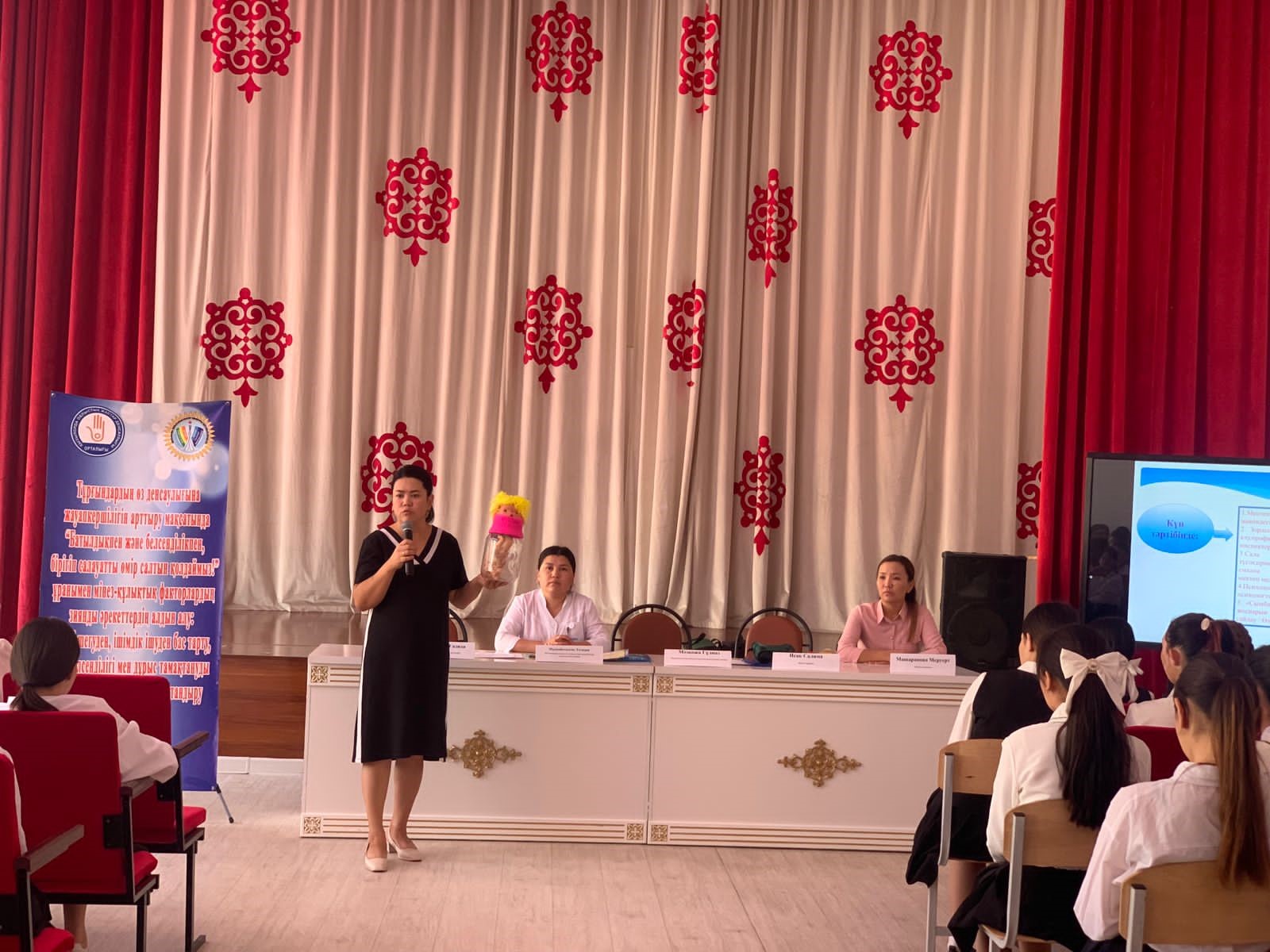 Облыстық жастар орталығының валеолог мамандары -Гүлназ Мәзқожа,Гүлдана Алмурзаева шақырылып,қыздарға жеке бас гигиенасы, репродуктивті денсаулықты сақтау туралы және салауатты өмір салтын дұрыс ұстану туралы ақпараттық түсіндірме жұмыстарын жүргізіді.