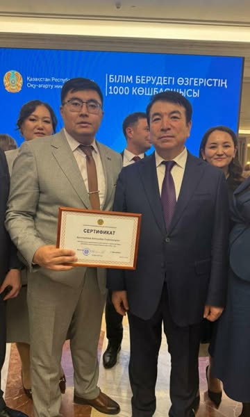 2023 жылдан бастап Мемлекет басшысының тапсырмасы бойынша аса өзгермелі жағдайларда басқаруға дайын кәсіби көшбасшыларды іріктеу және даярлау мақсатында «Білім берудегі өзгерістердің 1000 көшбасшысы» жобасы қолға алынған болатын. Білім берудегі өзгерістің көшбасшыларын іріктеу бес кезең бойынша жүзеге асырылады. Бірінші кезеңде үміткерлер өз құзыреттілігін бағалау үшін тестілеуден өтеді, екінші кезеңде оқуға жіберіледі, үшінші кезеңде еліміздің жетекші мектептерінде тағылымдамадан өтеді, төртінші кезеңде қорытынды бағалау рәсімі жүргізіледі және бесінші кезеңде министрлік жанындағы комиссиямен әңгімелесуден өтеді. Нәтижесінде басшылардың республикалық кадрлық резерві құрылып, сертификат табысталады. 5 кезең бойынша өткізілген 2024 жылғы кадрлық резервке мектебіміздегі озық ойлы, қадамы нық көшбасшы ұстаз Қыстаубаев Алтынбек Сейілханұлын сертификатқа ие болып, кадрлық резервке қабылдануымен шын жүректен құттықтаймыз!