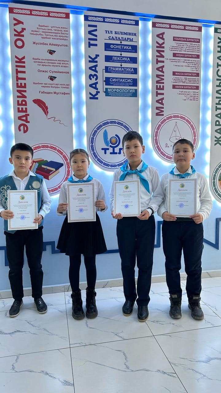 Мектебімізде 3 - 4 сынып оқушылары арасында мектепішілік пәндік олимпиада өткізілді. Тапсырмалар оқушылардың білім деңгейін ескере отырып жасалынды.