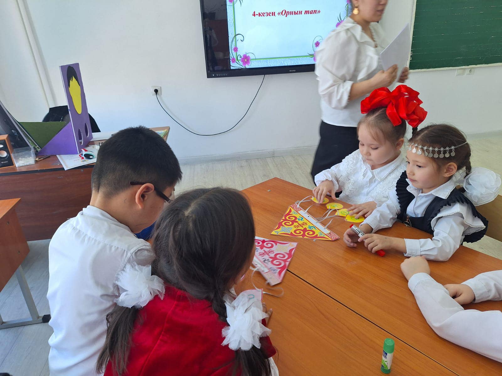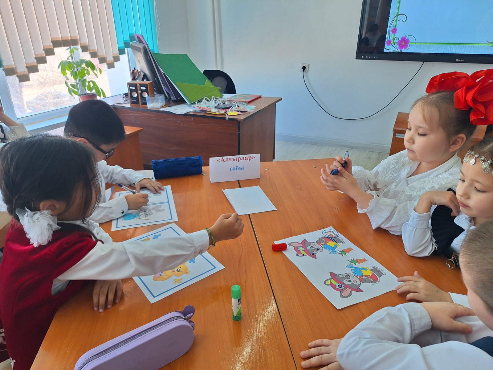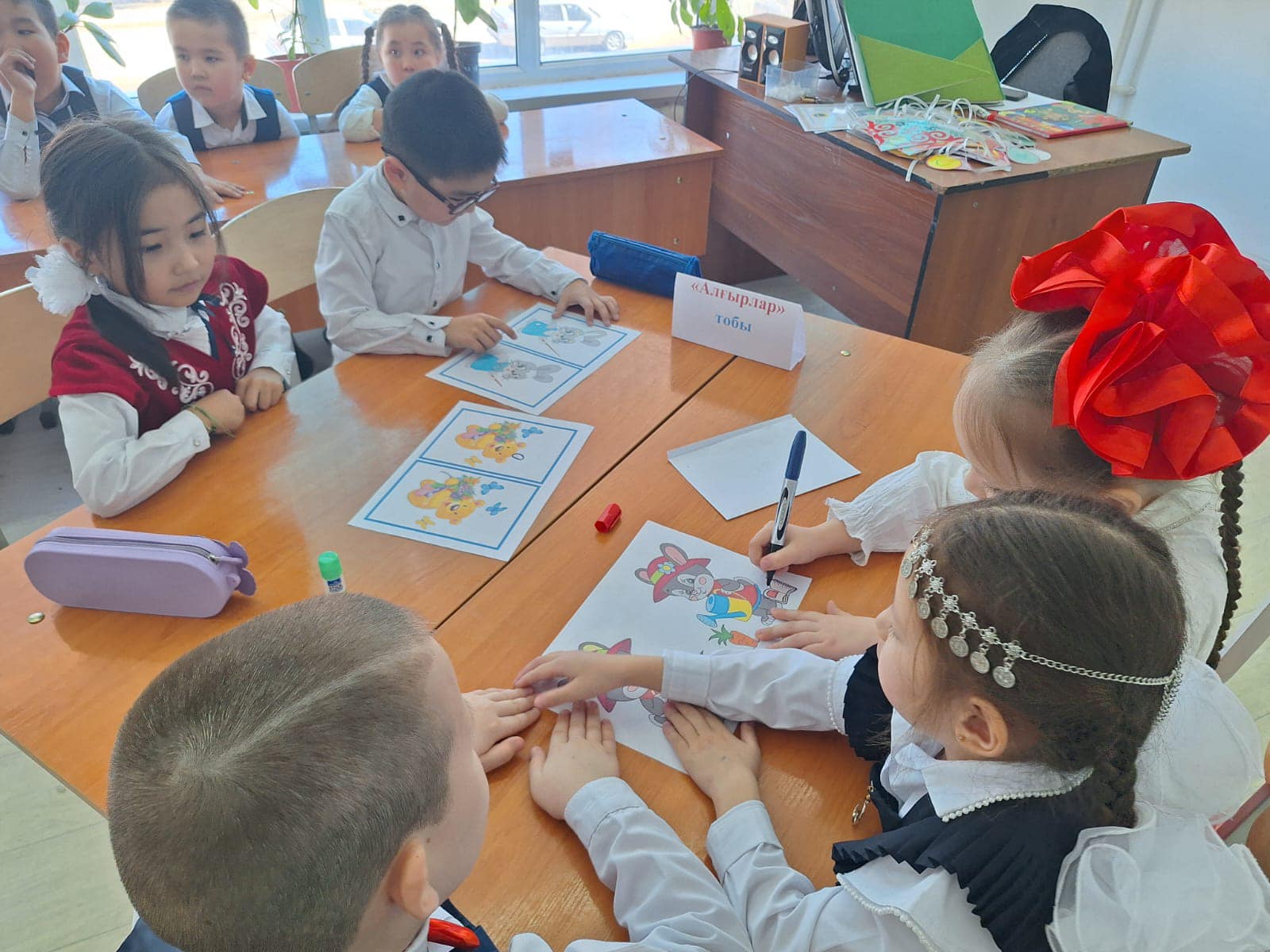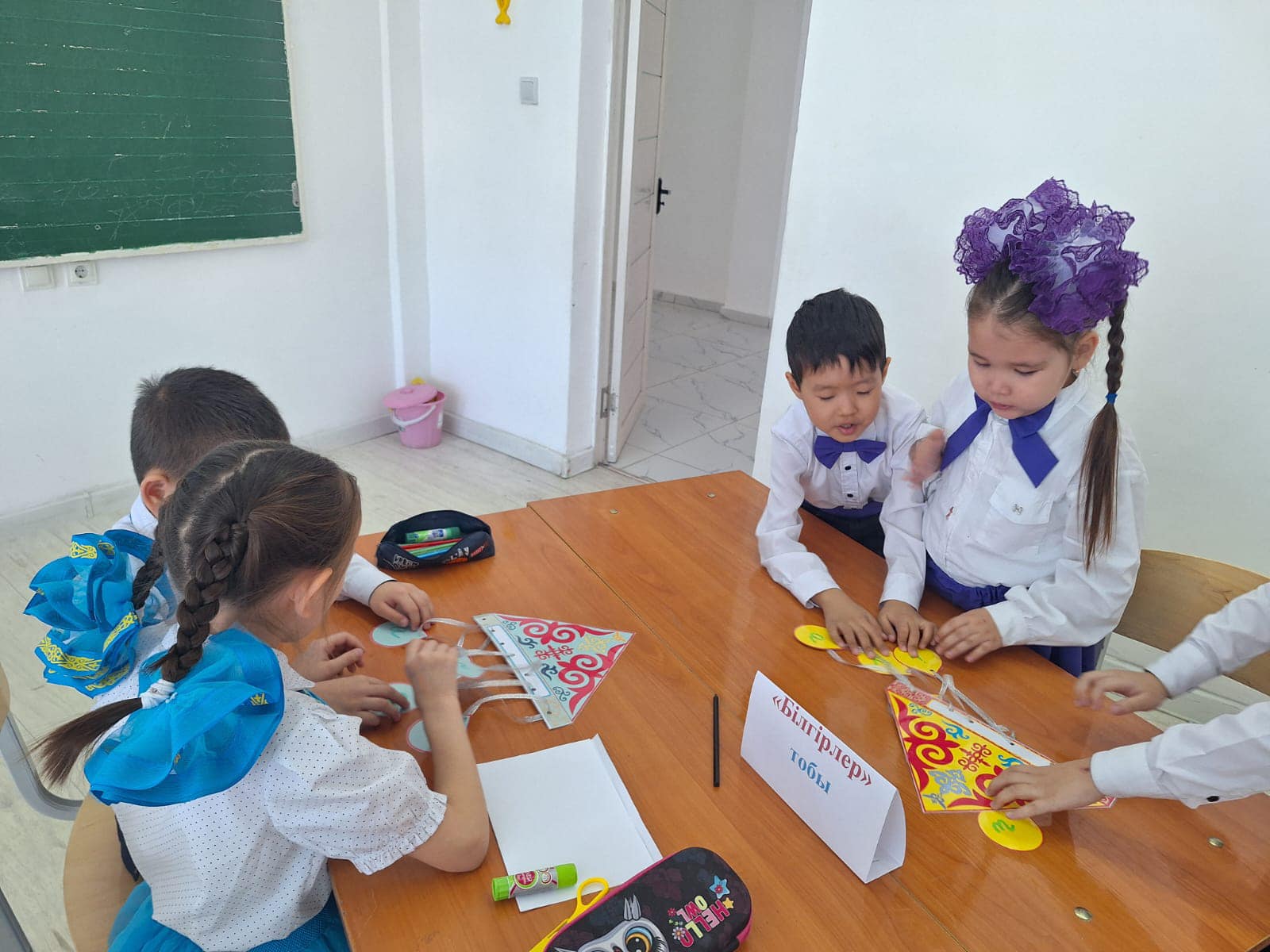 "Киіз үй" әдісі арқылы оқушылар "Тапқырлар", "Алғырлар", "Білімділер" болыа топтарға бірікті.