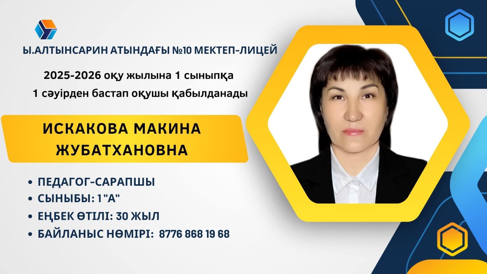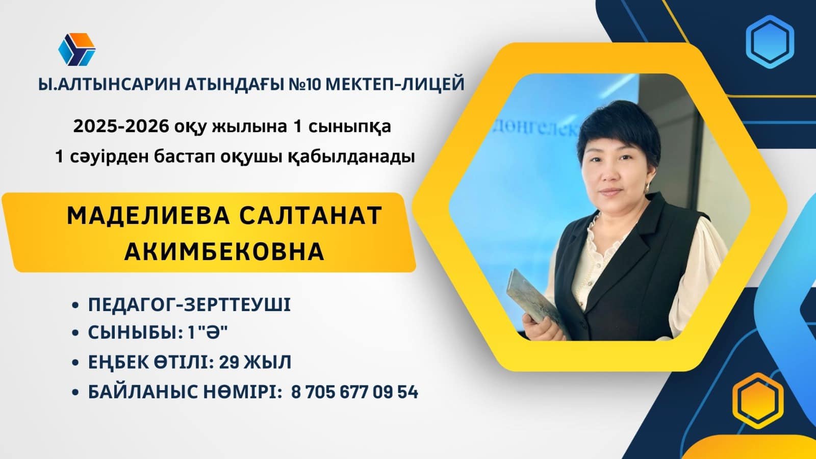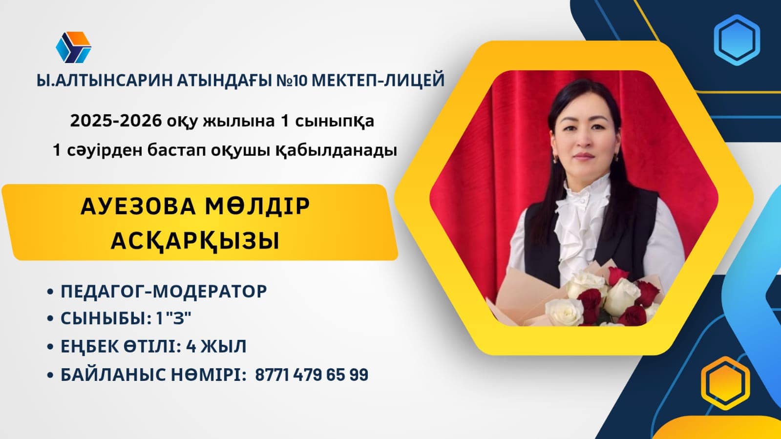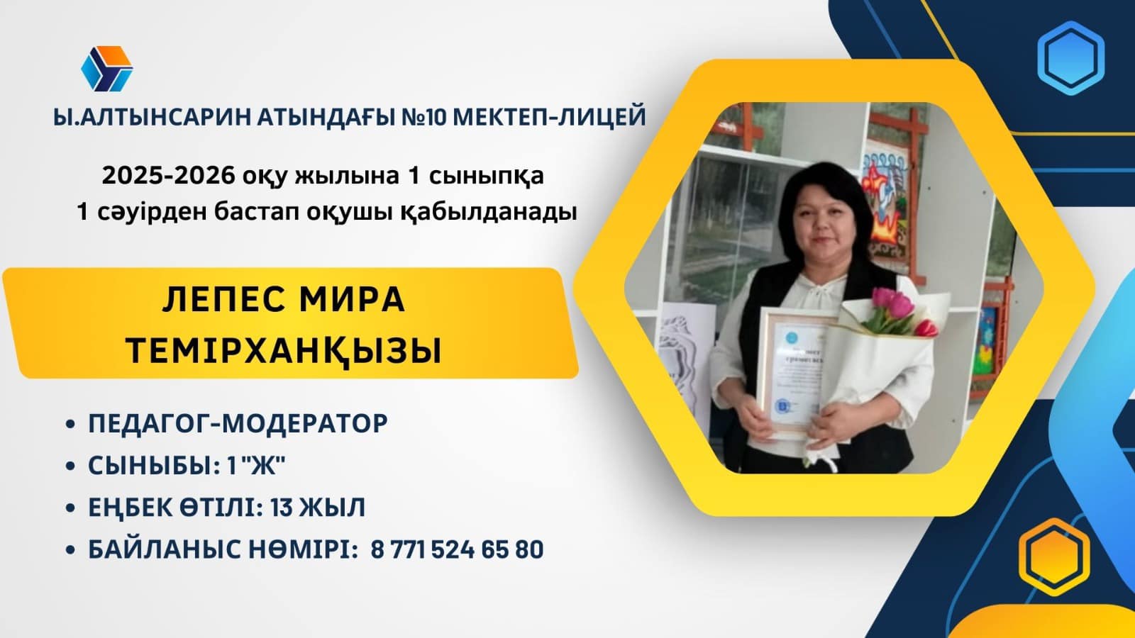 Ы. Алтынсарин атындағы 10 мектеп - лицей 2025 жылдың 1 сәуір - 31 тамыз аралығында 1 сыныпқа құжаттар қабылдайды.
